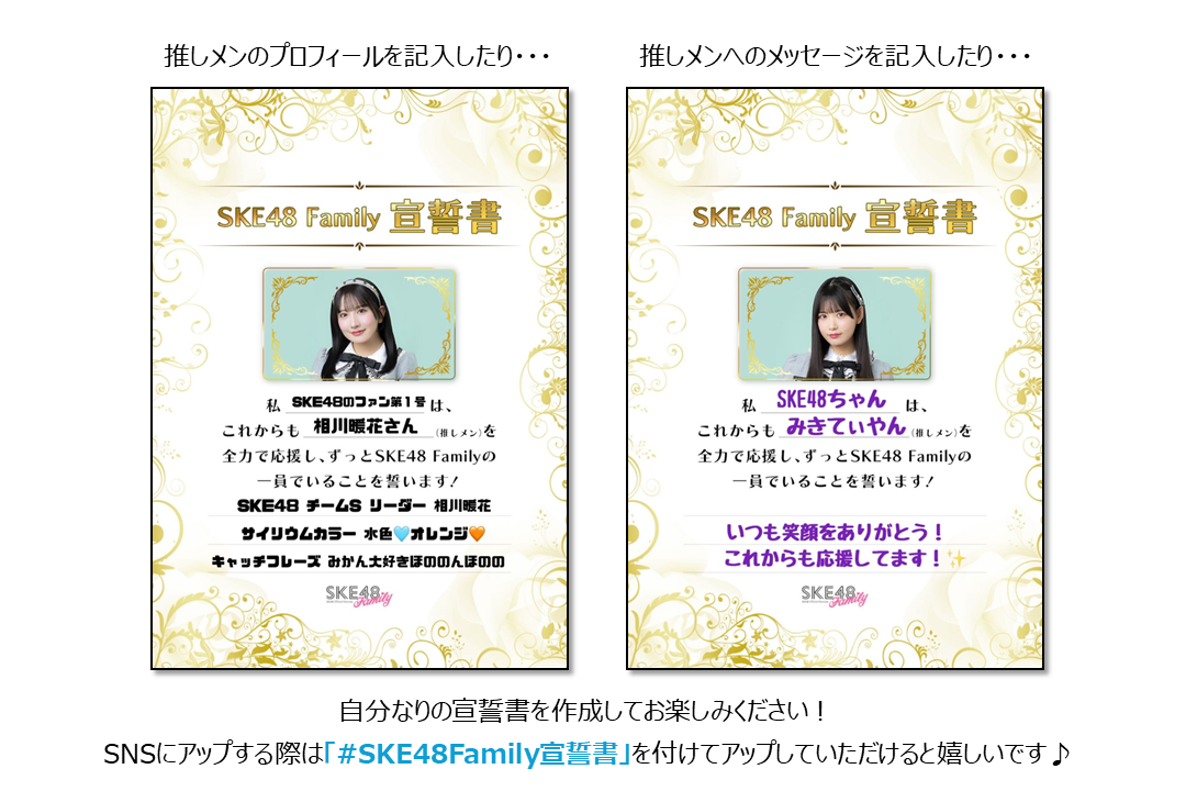 オリジナルの「SKE48 Family宣誓書」を作成して、自分の推しメンを拡散しちゃいましょう!