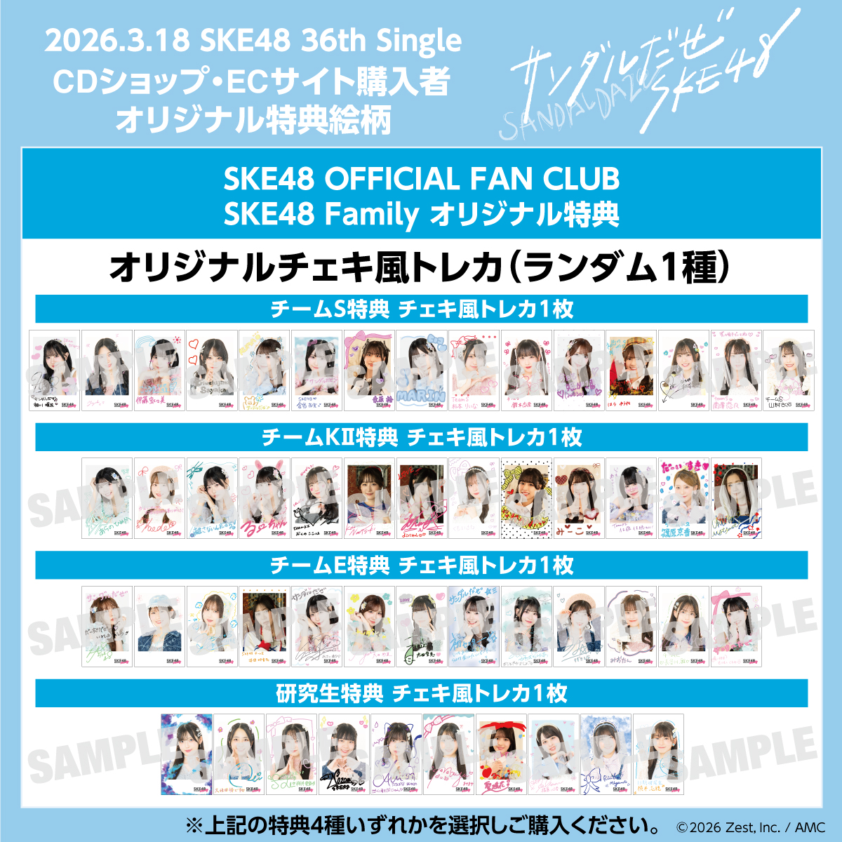 2026年3月18日(水)発売、SKE48 36thシングル「サンダルだぜ」の収録内容が決定いたしました!FC会員限定オリジナル特典の絵柄も公開です!